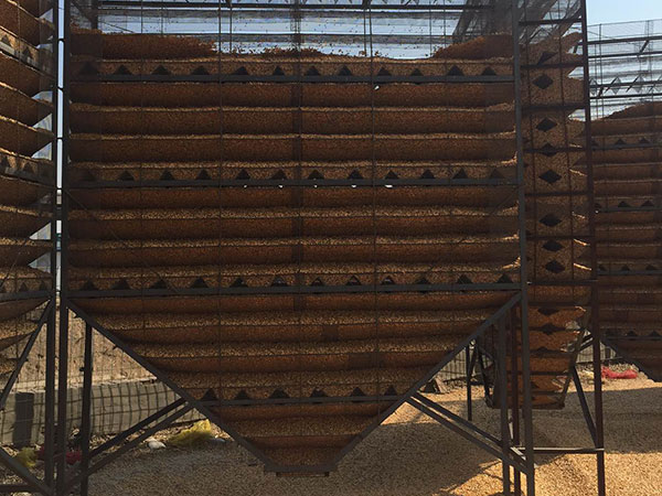 糧食風(fēng)干倉(cāng)變平面曬為立體晾曬,充分利用自然空間 玉米風(fēng)干倉(cāng)廠家,極大的節(jié)省占地面積。在自然晾曬中糧食全部離開了地面,受雨雪天氣影響極小,而且糧食品質(zhì)不會(huì)受到污染及霉變。同時(shí)利用谷類作物濕漲干縮的原理自動(dòng)翻糧,節(jié)省了人工翻動(dòng),減少了原糧的破碎率;糧食風(fēng)干倉(cāng)在常溫下自然風(fēng)干,保證了原糧的自然營(yíng)養(yǎng)成分;時(shí)間效率是地面晾曬糧食的2-4倍。每噸糧食整曬費(fèi)與地面晾曬相比節(jié)省人工支出30元左右。